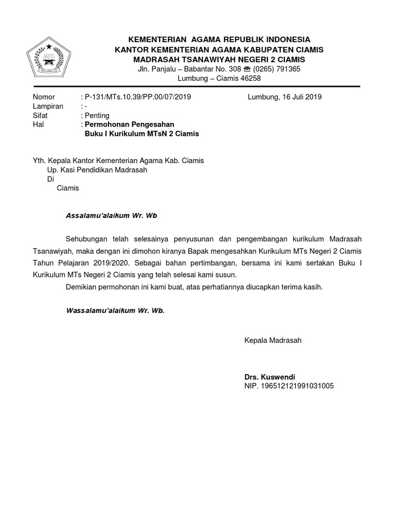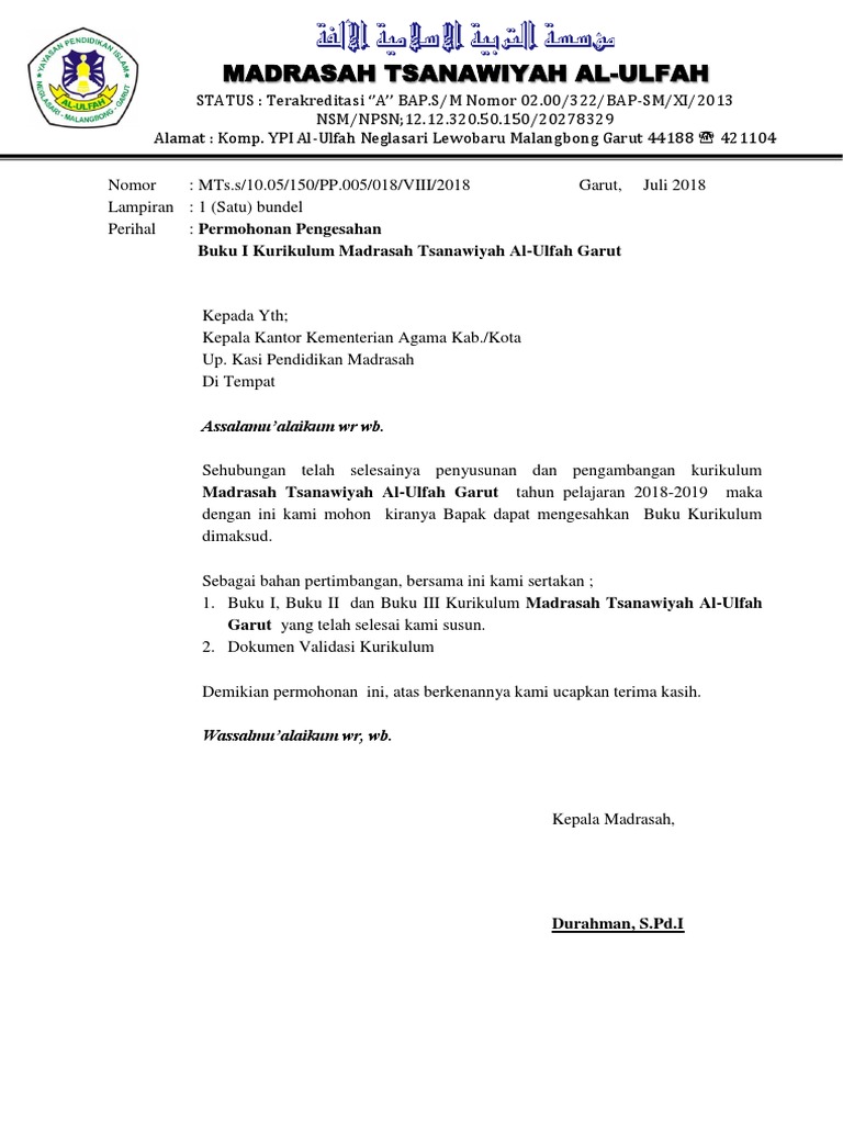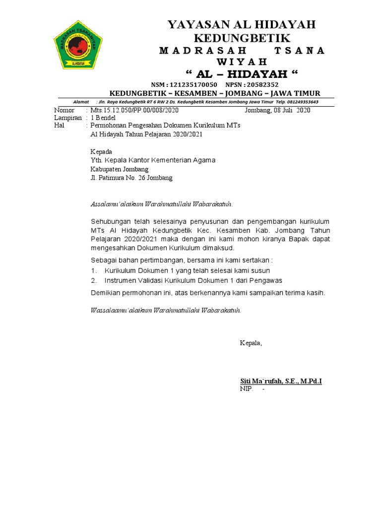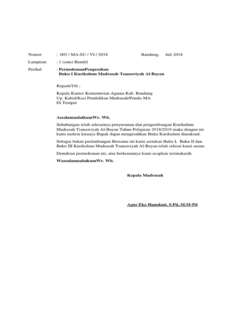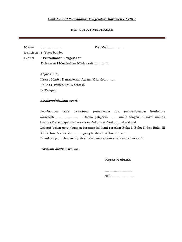 Contoh Surat Permohonan Pengesahan Ktsp Ra Mi Mts Pdf
